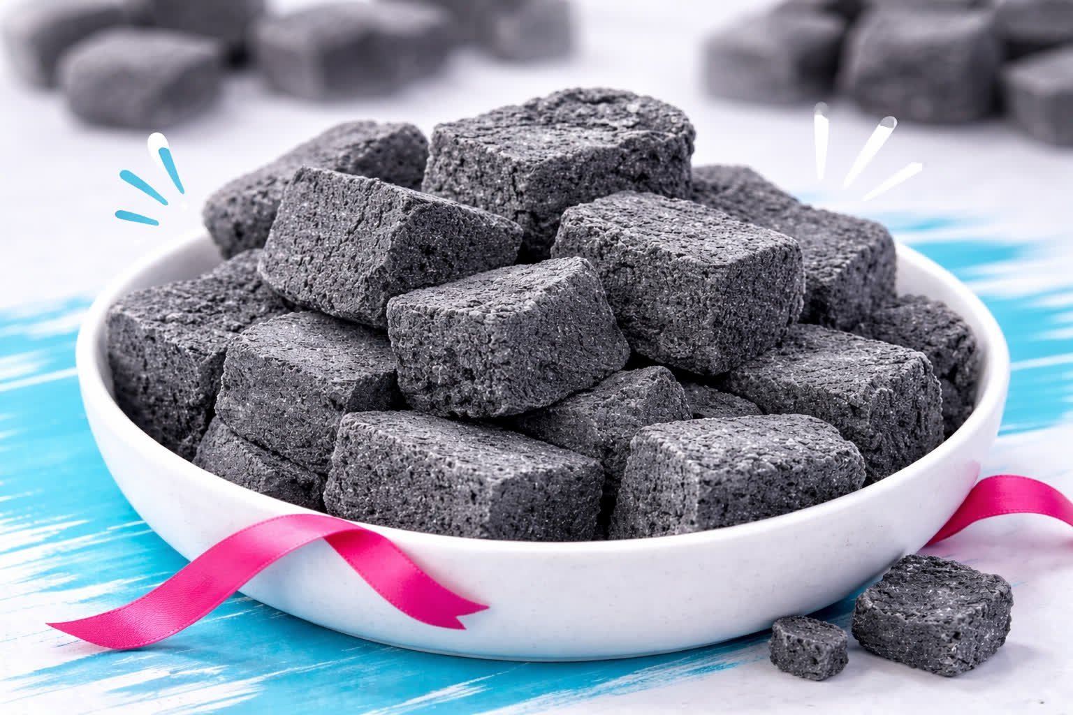 آيس كريم مجفف بنكهة كريمية مع فحم نباتي، بقوام مقرمش ومظهر مميز، وزن 60 جرام.