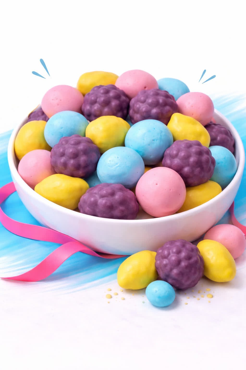 A 60g mix of freeze-dried candy featuring four delicious and refreshing flavors: strawberry, mango, berry, and grape. Each piece has a light, crunchy texture that melts in your mouth, with an intense, natural fruity flavor preserved through freeze-drying. A perfect treat for those who love unique, fun, and flavorful snacks.
