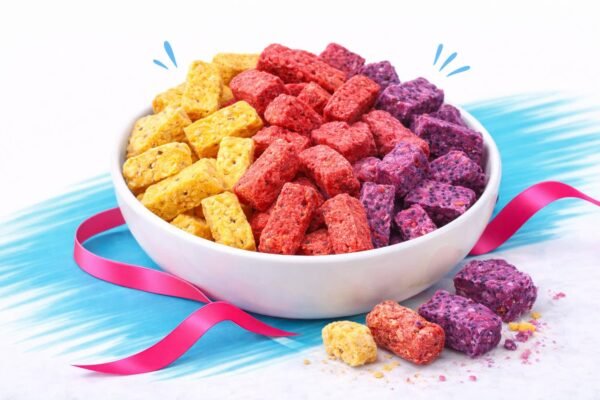 المكونات: مانجو، فراولة، دراجون فروت – مجففة بالتبريد بدون سكر مضاف أو مواد حافظة.