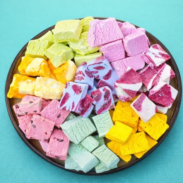 تشكيلة متنوعة من نكهات الآيس كريم المجفف.